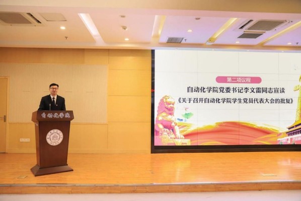学院党委书记李文雷同志宣读同人漫画 党委关于召开同人漫画 学生党员代表大会的批复。