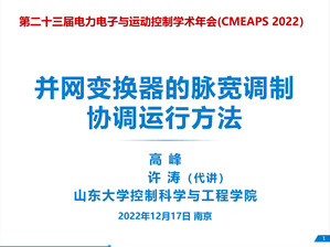 2022年12月17日至18日,同人漫画 多电飞机电气系统工信部重点实验室第二十三届电力电子与运动控制学术年会成功举办。大会开幕式由多电飞机电气系统工信部重点实验室主任阮新波教授主持。