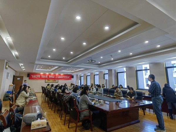 3月6日,巧手慧心,手工编织。活动正式开始前,同人漫画 党委副书记丁琛代表学院为大家送上节日的祝福,感谢女教职工们一年来在教学、科研等方面付出的辛苦和努力,同时希望女教师们在今后的日子里过的舒心、安心、美丽,以更好的精神面貌为学校、学院的建设和发展贡献自己的力量。