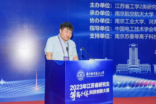 王振涛代表中国电工技术学会对主办方及承办方还有所有支持等离子体科技创新大赛的同仁们表示衷心感谢,他首先介绍中国电工技术学会及中国电工技术学会等离子体及应用专业委员会创办历史和发展趋势,指出了本次举办的江苏省研究生等离子体科技创新大赛,是教指委、高校、学会共同协作,深化国省产教前沿融合的创新之举,希望参赛同学们抓住与专家学者们近距离学习的机会并展现自己的研究成果,拓宽思维和视野,提升学术和实践能力。