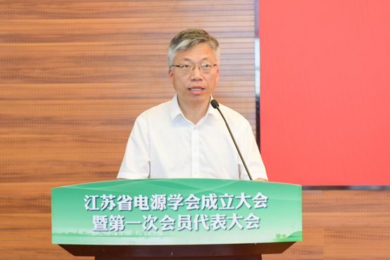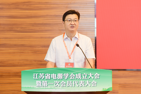 省科协学会学术部岳智顺部长祝贺学会正式成立,并表示成立新学会是一种情怀、是一种责任和奉献。江苏省电源学会的成立正是处于学会发展的黄金期。办好学会要夯实基础,赋予理事会职能,建章立制,广泛吸收会员和青年才俊,制定学会发展的工作规划,也要切入地方产业。
