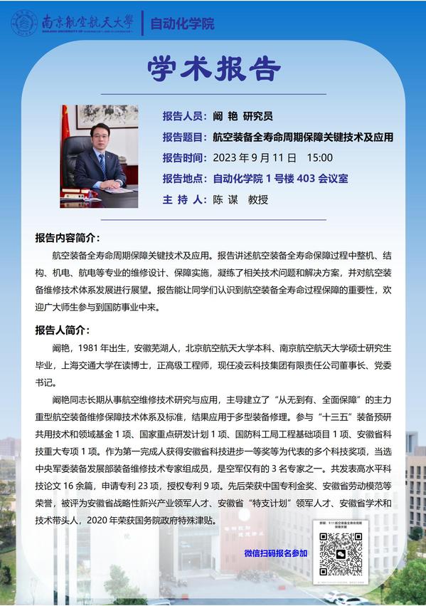 【学术报告】阚艳:航空装备全寿命周期保障关键技术及应用