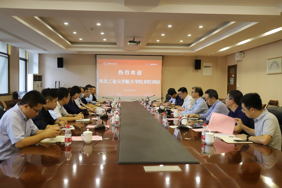 9月27日,西北工业大学航天学院执行院长岳晓奎、党委书记黄越、副院长宁昕一行八人来院调研交流。同人漫画 党委书记李文雷、院长陈谋带领学院领导班子成员参加交流会。会议由同人漫画 党委副书记丁琛主持。