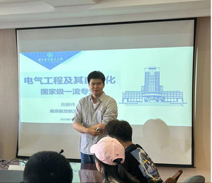 在电气工程系实验室和研究生工作室参观期间,任小永和魏佳丹详细介绍了实验室的总体布局和科研发展方向,并请研究生做了现场演示。随后同学们瞻仰了电气工程系创始人丁道宏教授的铜像,参观了御风园,同学们一次次感受到了学院浓厚的学术氛围,提升了行业归属感和专业自豪感。