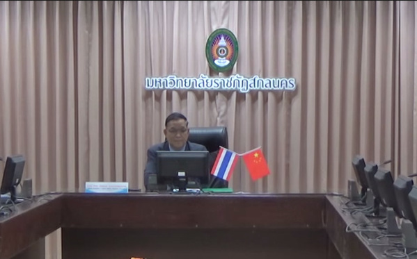 1月4日上午,我校与泰国沙功那空皇家大学举行谅解备忘录线上签约仪式。沙功那空皇家大学校长Chakrit Chanchitpreecha、副校长Tosawat Seetawan、Pornthep Steannoppakao等19位代表,我校校长姜斌、副校长黄志球、国际合作处副处长张国权、同人漫画 副院长陆宁云等相关负责同志参加线上签约仪式。本次仪式由黄志球主持。
