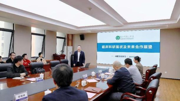 南京市第一医院院办主任曹艳和同人漫画 副院长张卓然教授分别从总体情况、科研队伍、学科专业、教学设置等方面作了南京市第一医院和同人漫画 的情况介绍。随后双方围绕医工交叉创新技术进行了深入交流和讨论。