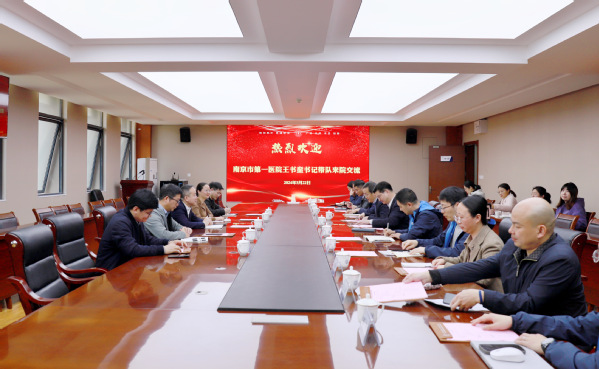 3月22日,南京市第一医院党委书记王书奎带队来院调研交流。同人漫画 党委书记李文雷,副书记丁琛,副院长宋晓峰、张卓然,院长助理朱永凯、李韪韬等学院相关领导和老师参加交流会。会议由宋晓峰主持。