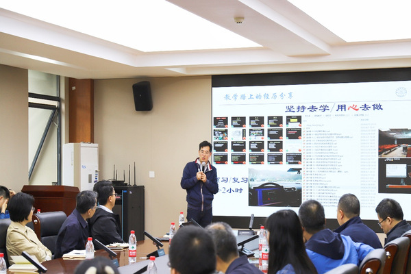活动开始,王晓琳从教学理念、教学传承、教学方式方法等多个方面阐述“如何上好一门课”。他认为教师站稳讲台是上好一门课的基础,需要始终坚持“以学生为中心”的教学理念,正确认识师生在教学中的“主导”作用以及“主体”作用;掌握一套好的教学方法是上好一门课的必要条件,需要注重在继承前辈教学经验的基础上持续探索、研究和打磨创新个人教学特色。接着,王晓琳结合自身备课、说课等经历分享经验与感悟,明确什么是好的课堂,好的课堂应该包括知识传授、智能培养和价值引导三个方面,做到“有心”、“有趣”、“有思”、“有为”。