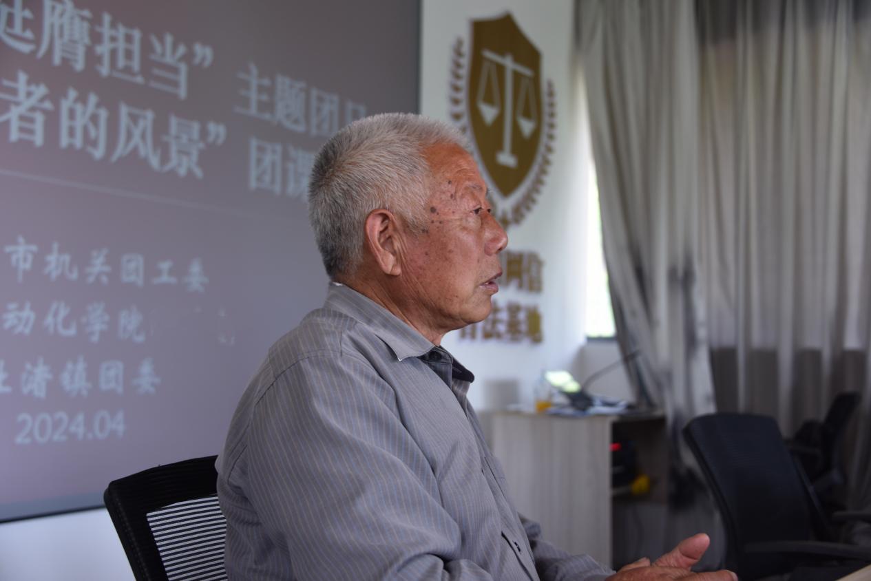 全国劳动模范王海清结合自身经历分享了全村干群大搞丘陵山区综合开发,把117座小山头变成村民的“绿色银行”,最终把荒山秃岭变成“金山银山”的故事。王海清始终以人民为根本,以群众为基础,大力发展当地经济,教育建设,向青年生动诠释为人民服务,不懈奋斗,实干苦干的老支书精神。青年们纷纷表示老支书不忘初心,挺膺担当的精神令人钦佩,年轻一代更要勇挑重担,以实际行动展现祖国建设者和接班人的风采。