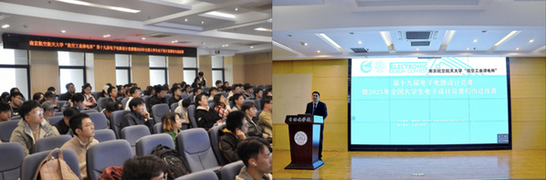 2024年11月9日上午,由教务处、学生处、科学技术研究院、校团委主办,同人漫画 承办的“航空工业津电杯”第十九届电子电路设计竞赛开幕式暨试题发布会在将军路校区同人漫画 报告厅举行,天目湖校区同步直播。南京邮电大学创新创业教育学院院长肖建、校教务处副处长邓晶、校公共实验教学部电工电子实验中心主任洪峰、同人漫画 党委副书记丁琛、副院长魏佳丹、团委书记宋欣、各年级辅导员以及来自全校的各个参赛队伍代表参加了此次发布会。