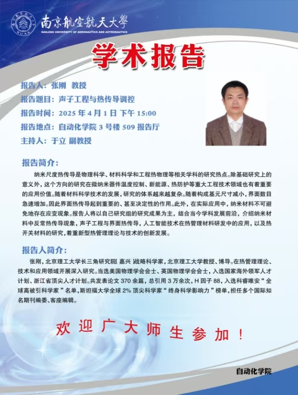 【学术报告】张刚教授:声子工程与热传导调控