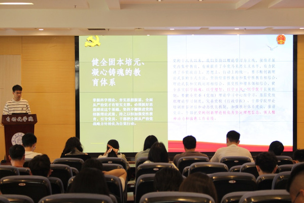 学院党政办公室臧珂向毕业生党员详细解读了2025年毕业生党员组织关系转接政策并进行现场答疑。她强调组织关系转接是党员政治生命的“延续键”,各支部必须严格遵守通知中的各项要求,确保毕业生党员组织关系转接工作高效顺利推进。