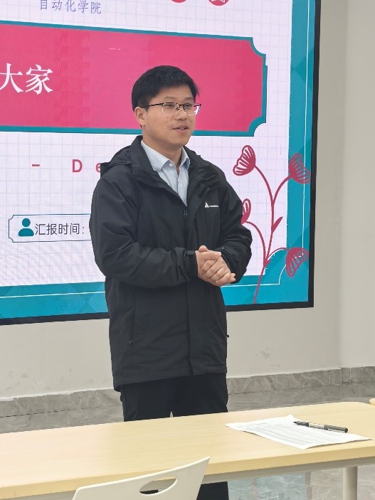 卜飞飞老师首先对第一学期做出总结,对班级平均GPA及其分段情况进行分析,肯定了同学们在入学第一学期取得的成绩,表扬同学们赓续了001班拼搏争先的优良传统,期待同学们在今后的学期中取得更加优异的成绩。随后,卜飞飞老师为同学们进行科创与竞赛方面的指导,介绍了一系列赛事和项目信息,并根据不同赛事的安排,为同学们制定了学习、生活和时间管理方面的目标,鼓励同学们致力积极参与竞赛活动。