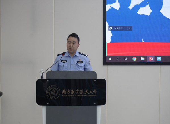 陈建彪围绕人身安全、财产安全、网络安全和禁毒宣传四个方面进行宣讲,结合法律法规和真实案例,为现场师生们带来一堂生动且深刻的安全教育课。他揭露了经常发生在同学们身边的游戏账号交易诈骗、冒充熟人和客服诈骗、兼职刷单诈骗等常见诈骗手段,告诫同学们不要被假象所迷惑,切勿贪图小便宜,不给犯罪分子留有可乘之机。