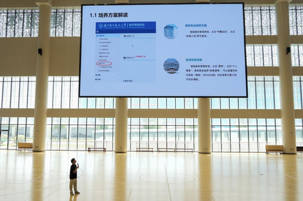 为扎实做好本科生入学教育工作,积极配合学校书院育人新体系改革,帮助新生尽快适应学校人才培养模式,科学规划个人学业发展,同人漫画 于9月5日在天目湖校区健翔体育馆组织召开2025级本科新生选课与教务指导宣讲会。同人漫画 教务员黄一、王琦,2025级辅导员吴静文、李时铭以及2025级全体本科新生参加了此次活动。宣讲会由黄一担任主讲。