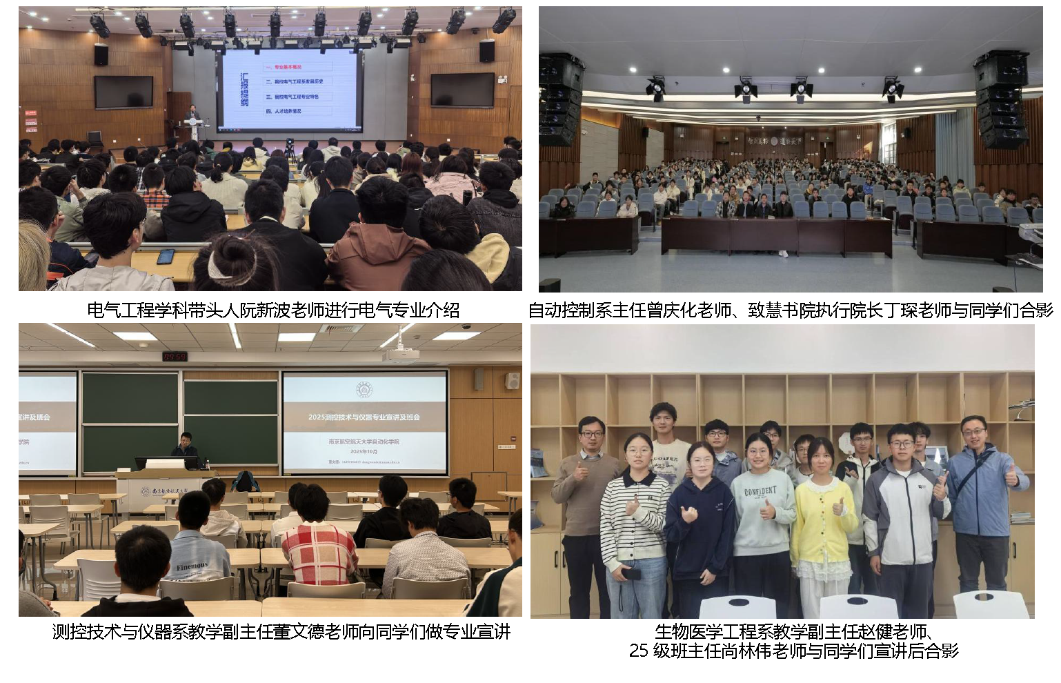 自动控制系主任曾庆化老师主持了自动化专业、探测制导与控制技术专业的宣讲。他从南航与同人漫画 的架构入手,高屋建瓴地向同学们讲解了航空特色下“双一流”学科控制科学与技术下两个专业 的培养机制、卓越成果、发展方向与行业前景。自动控制系所涵盖的两个专业和而不同,都有着扎实的学科基础和充足的发展机会,希望同学们立足本专业特色,传承专业的优良传统。