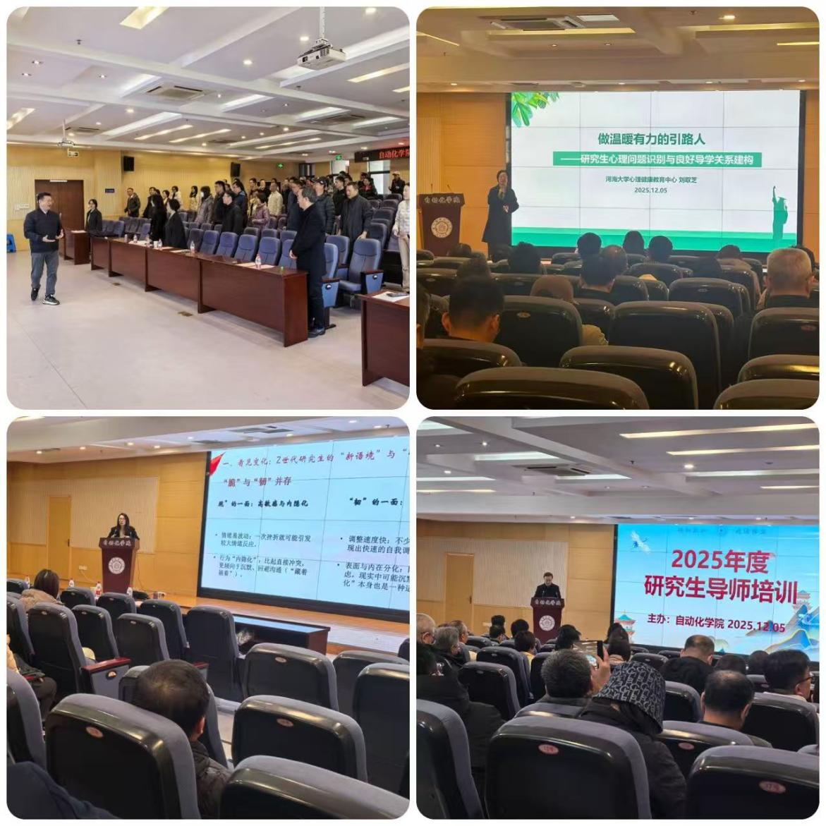 12月5日下午,同人漫画 2025年度(下半年)研究生导师培训会在511报告厅召开。本次培训会聚焦师生身心健康与导学关系提升,特邀艺术学院院长板俊荣教授、河海大学学生处副处长刘取芝教授和学院党委副书记阙愚作专题报告,学院研究生导师和教学办老师共计100余人参加培训。培训会由学院副院长宋晓峰主持。